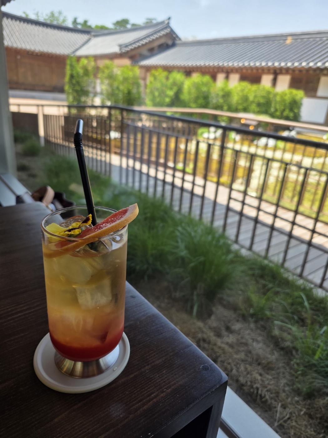 진짜 최고였던 순간은요, 명월 한 잔 들고 통유리창 앞에 앉아 정원 바라볼 때! 명월 뭐냐면 김해 특산물 장군차에 향긋한 자몽을 더한 아이스티인데, 한 모금 마시면 과거와 현재를 넘나드는 여행자 느낌이 나요. 풍경이랑 같이 보면 심신이 정화되는 기분. 사진 찍느라 정신 없었던 건 안 비밀.