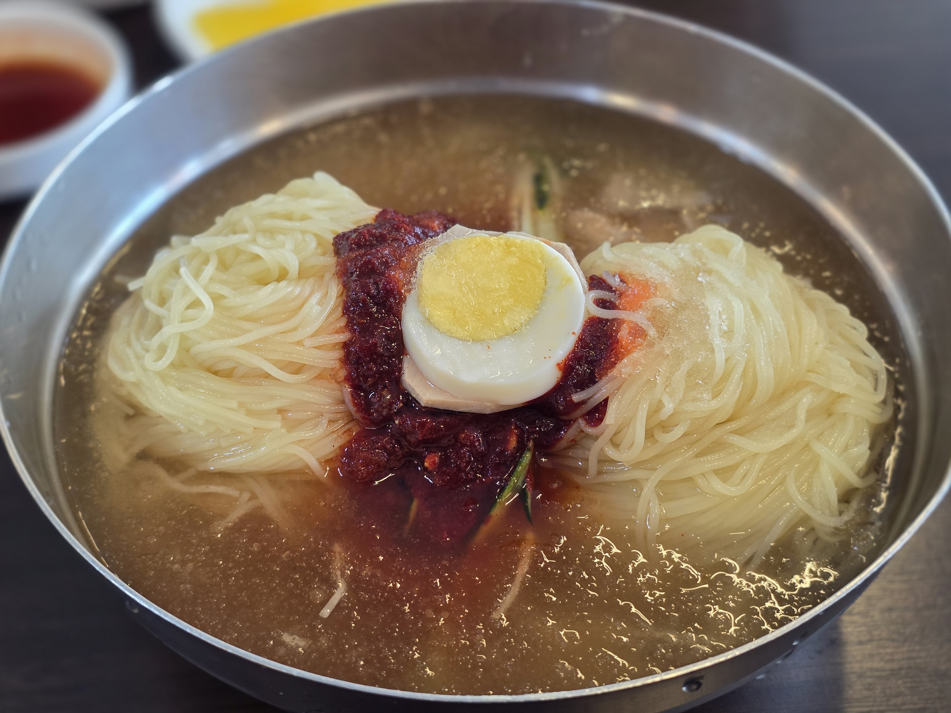 - 물밀면은 육수가 새콤달달~하면서도 은근 깊은 맛. 저 육수는 솔직히 중독감 있어요.