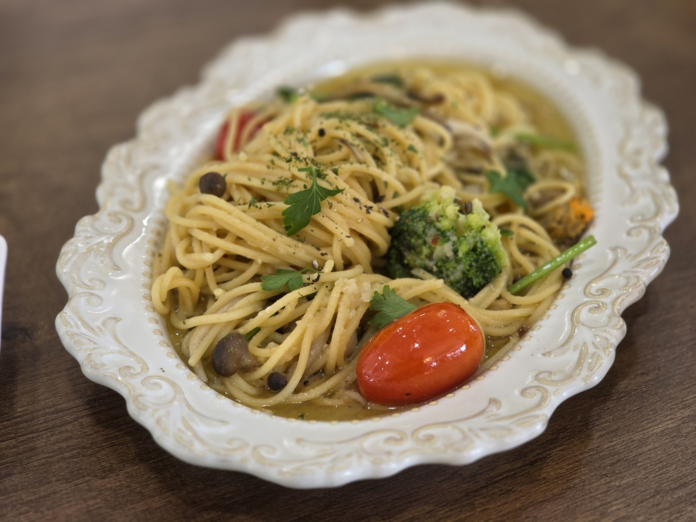 마늘 향이 진하게 퍼지면서 버섯의 감칠맛이 입안에서 톡톡 튀어요. 오일 파스타 특유의 담백함이 살아있어서 끝까지 깔끔하게 먹을 수 있었어요. “이건 혼자 다 먹고도 남을 수 있다”는 생각이 절로!