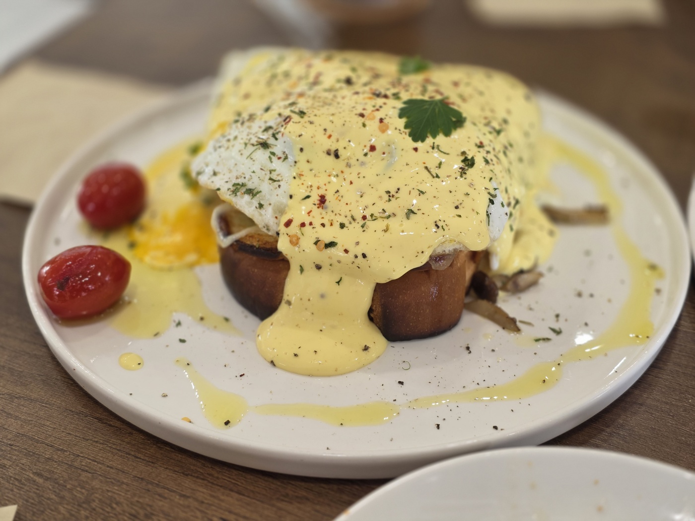 브런치 플레이트는 한 접시에 행복을 담아낸 느낌이었어요. 바삭한 빵, 신선한 샐러드, 달걀과 베이컨까지 골고루 있어서 한 입 먹을 때마다 조합을 바꿔가며 즐기는 재미가 있었습니다. 아침 겸 점심으로 딱!